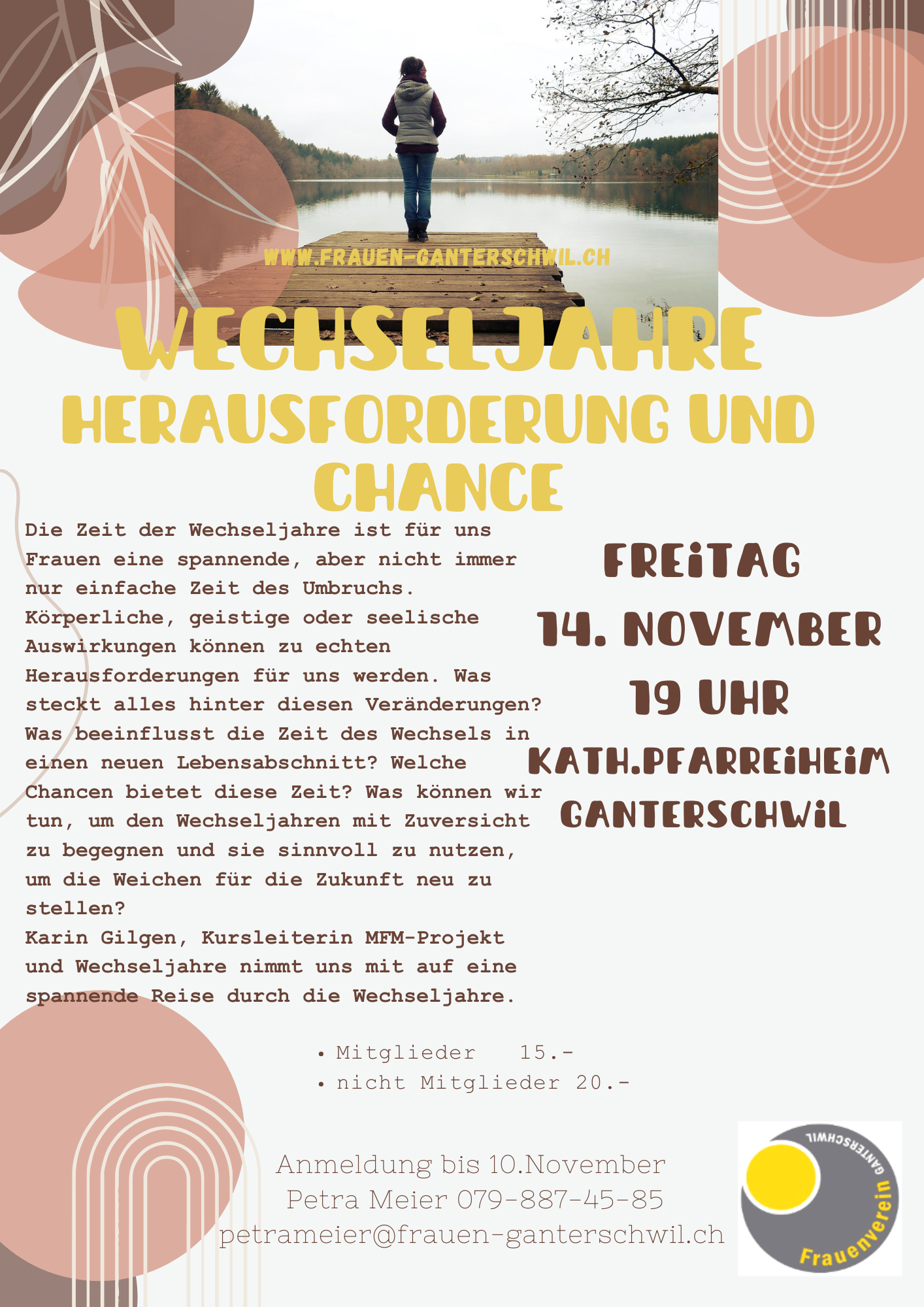 Vortrag Wechseljahre am 14.November. Meld dich an und sei dabei, Infos in der Agenda unten.